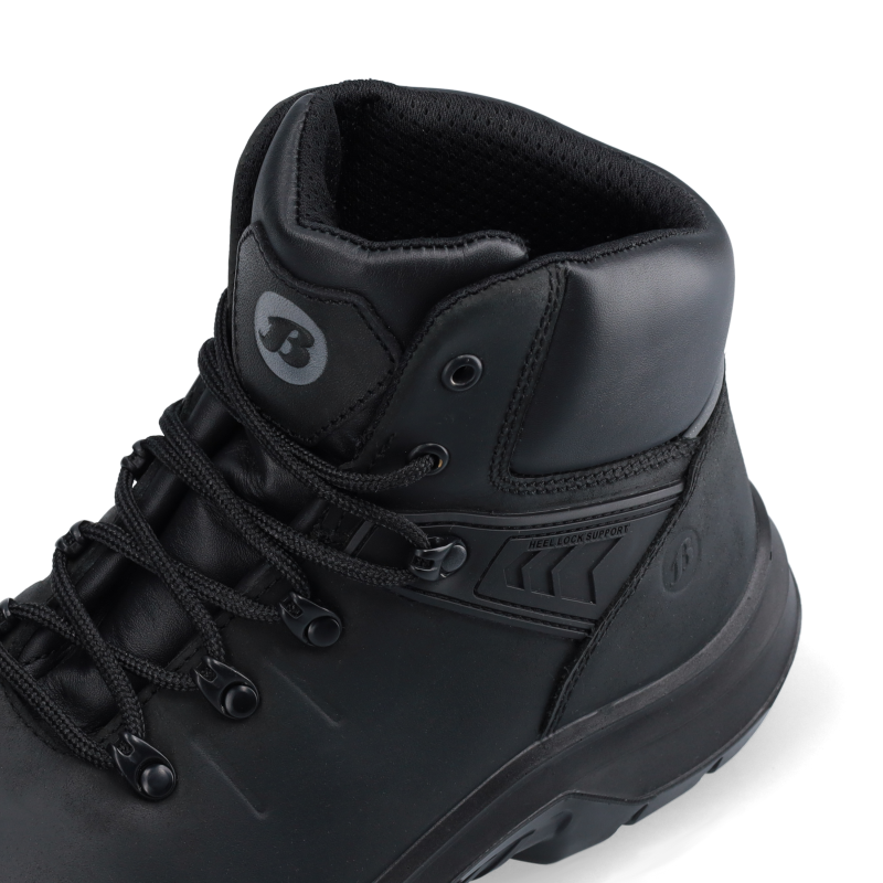 Dit zwarte hoge model S3 veiligheidsschoen heeft een aluminium neus en een stalen antiperforatiezool. Deze ACT212 schoen is ESD en bestand tegen hitte en kou. Het bovenwerk van deze veiligheidsschoen is gemaakt van leer, dat waterbestendig is. De zool is gemaakt van PU/PU-materiaal. Dit model is voorzien van de verbeterde Walkline® 3.0 technologie en de ondersteunende technieken Easy Rolling®, Heel Lock System® en het Tunnel system®. De voering van textiel is voorzien van Bata Cool Comfort®. Odor Control houdt de voeten fris en hygiënisch.